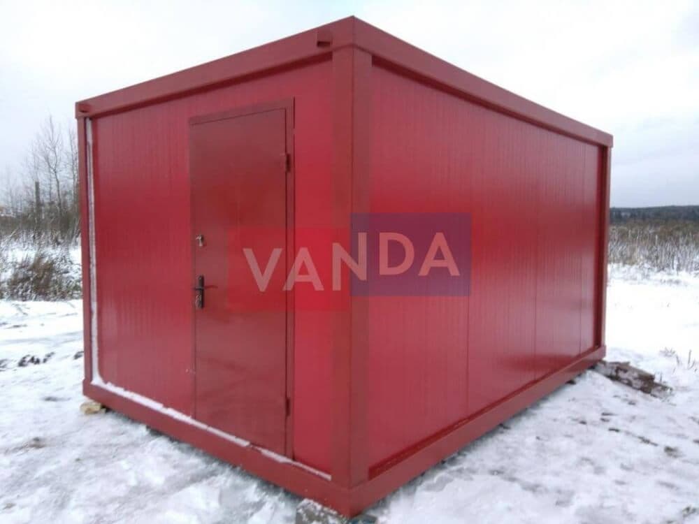Контейнер состоит из металлического сварного основания. Стены изготовлены из сэндвич-панелей с прокладкой утеплителя. Крыша покрыта крашенным холоднокатаным металлом 1,2 мм. Помещение обустроено пароизоляцией при помощи технической пленки, которая проложена на полу и потолке. Внутренняя облицовка потолка выполнена из ПВХ-панелей, пол – из шпунтованной доски. Вход в помещение оборудован запирающейся металлической дверью.