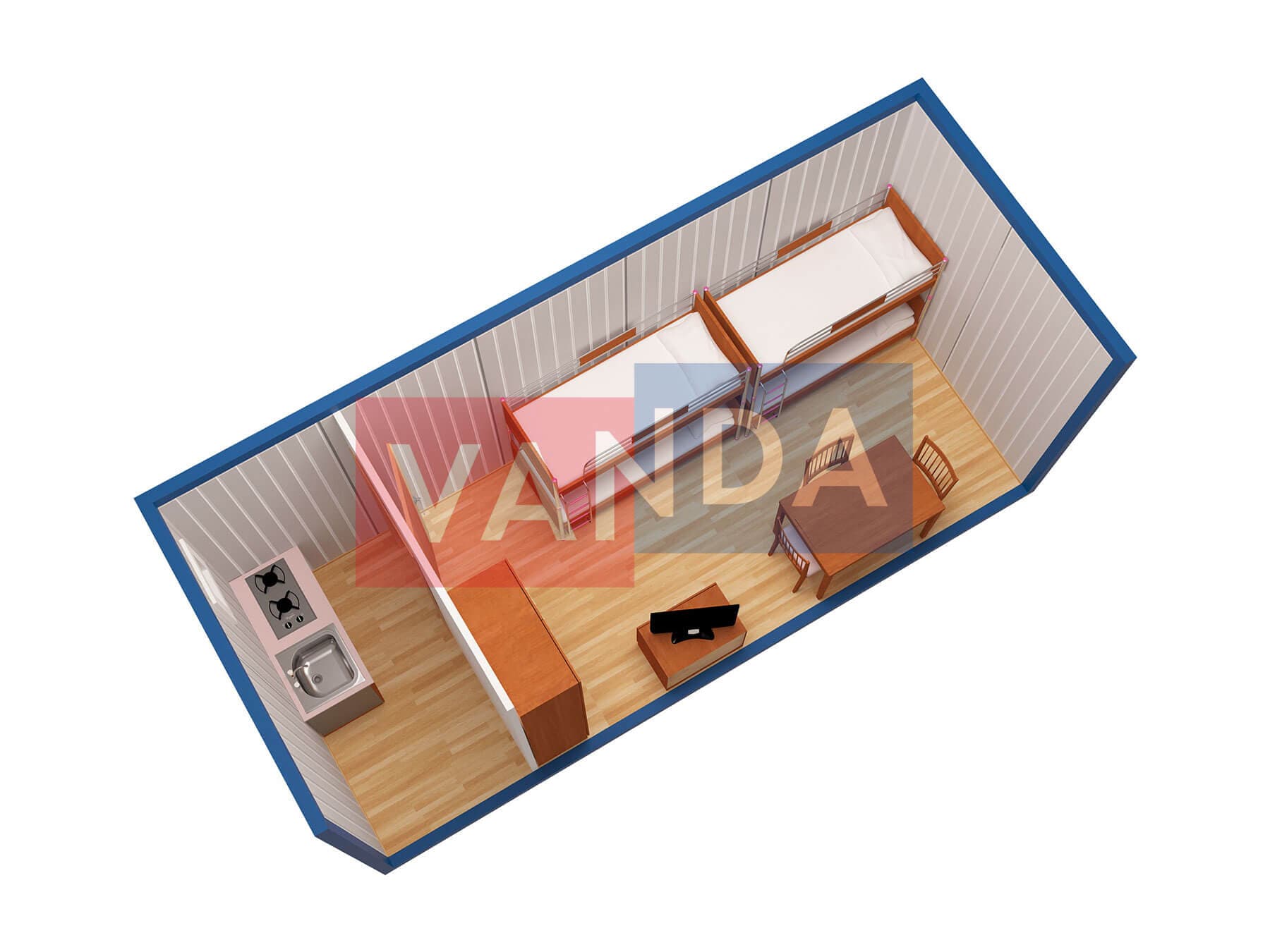 Металлическая бытовка без тамбура 5,85 x 2,4 - Вагонка деревянная